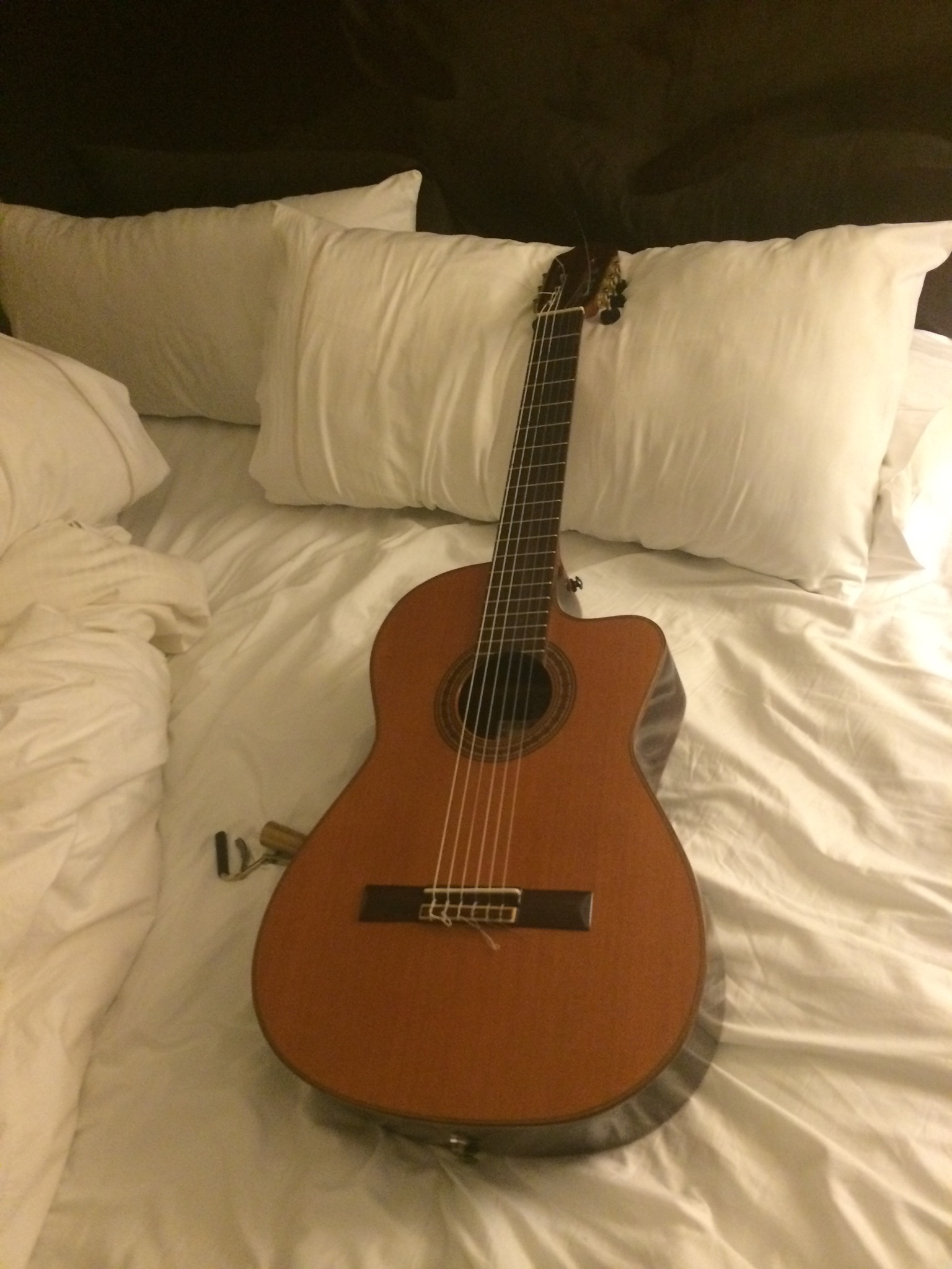 Someone’s been sleeping in my bed. My dear guitar has had more sleep than me that is for sure.
